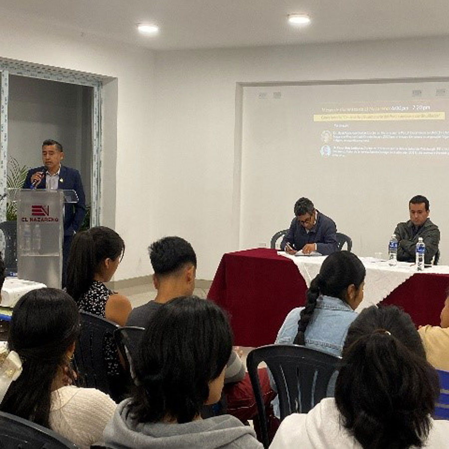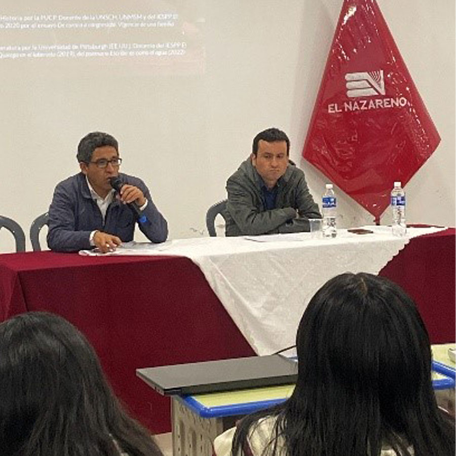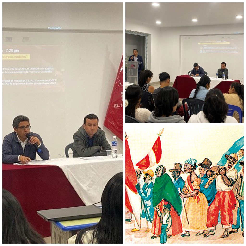 El jueves 27 de noviembre a las 6:30 pm en la Sala de Usos Múltiples (SUM) del Instituto Pedagógico El Nazareno se llevó a cabo el conversatorio de docentes titulado “Centenario y Bicentenario del Perú: cambios y continuidades” en el marco del 1er Coloquio de estudiantes de Educación: literacidad clásica y Nuevas literacidades, con la participación del Dr. David Quichua Chaico* y el Dr. César Ruiz Ledesma**, bajo la moderación del Mag. Hugo Ccorahua***. La conversación se desarrolló en tres bloques de 20 minutos cada uno.