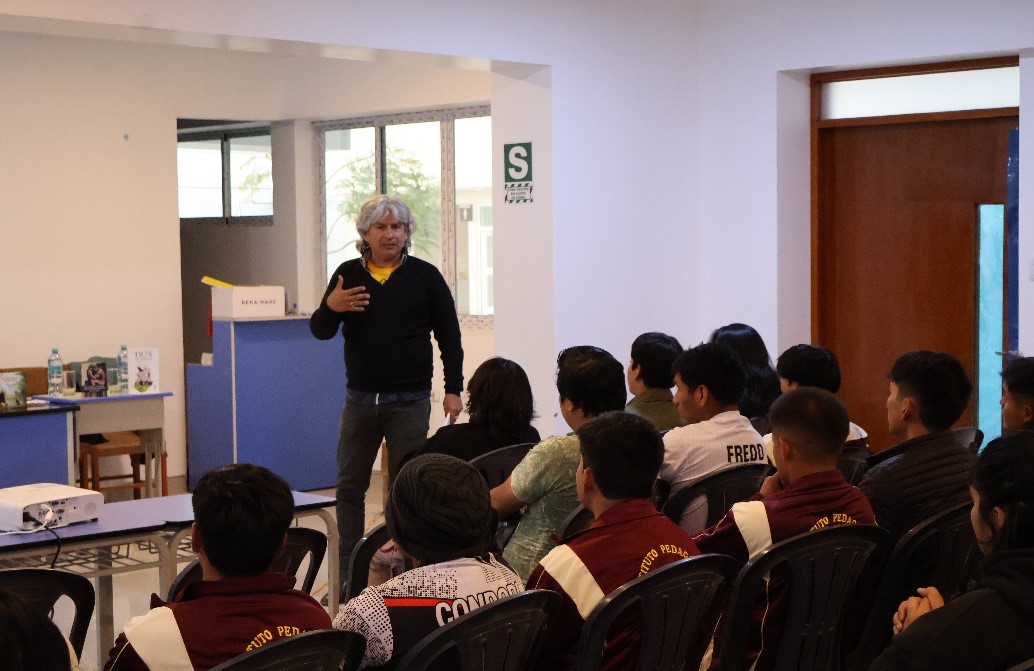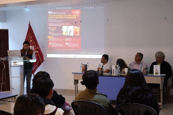 Por su parte, Mauricio Montoya nos habló del microrrelato a propósito de los libros que presentó: Micro-trazos infantiles, Atómicos y Brevedades literarias para lectores inquietos. La brevedad, dijo, no es sinónimo siempre de simpleza, sino que puede -como la poesía- condensar las intricaciones más complejas que los homos sapiens podemos producir. Los escritores se removieron en sus asientos y agitaron sus melenas -algunas breves- cuando Yuliño Robles del IV ciclo y escritor en ciernes, hizo la pregunta a la que todo escritor adolescente que va en serio arriba: ¿qué hacer con el enmarañado de ideas que nos abruma cuando escribimos en las noches previas al alba? Mauricio, con gallardía colombiana, saltó a la palestra esgrimiendo una valiente respuesta: ‘déjalos venir pues así vendrán varias historias’.